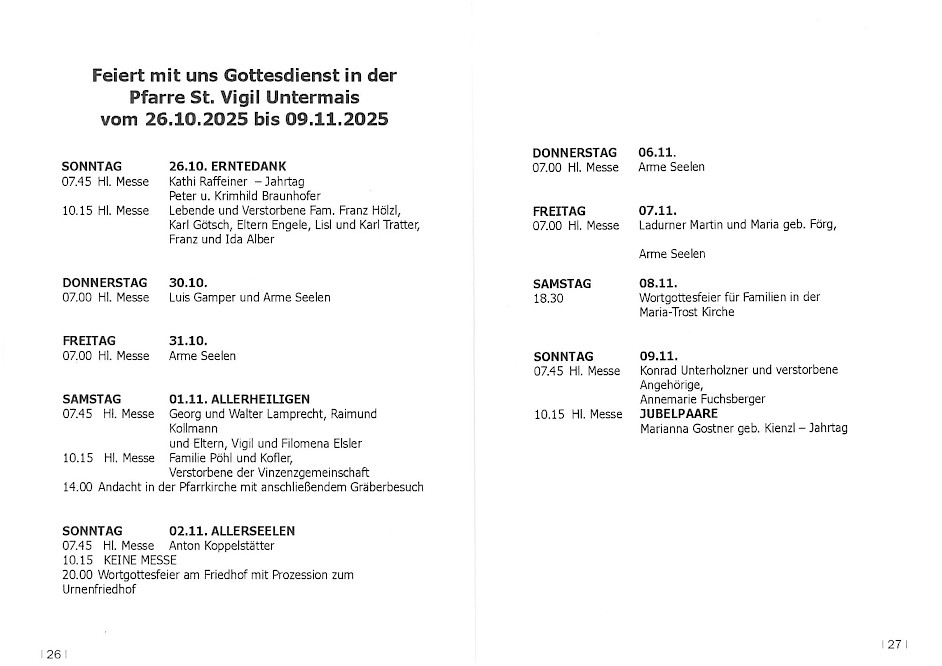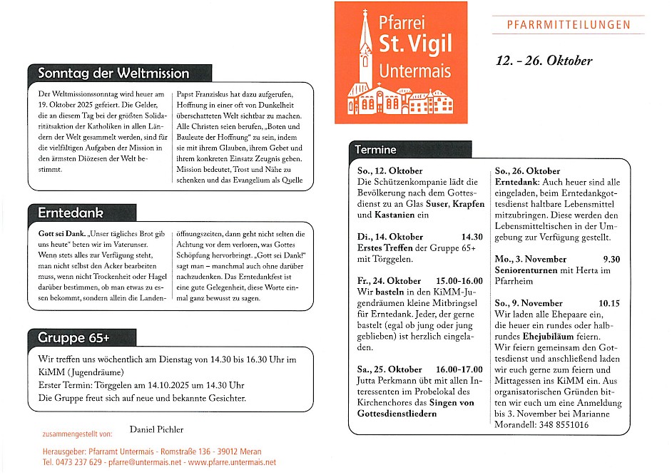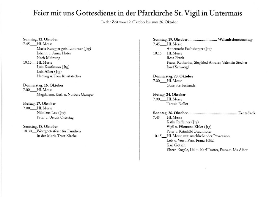 Aschbach und Vellau Algund: siehe wöchentliches Mitteilungsblatt